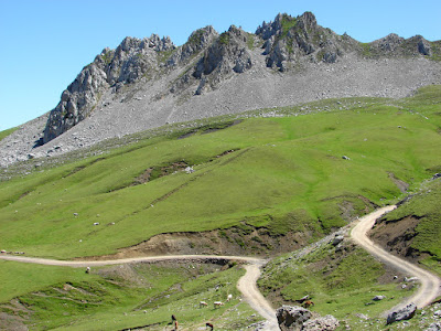Una vez terminamos de comer comenzamos el descenso por el tramo mas complicado, la pendiente y las piedras sueltas lo hacen bastante peligroso e inestable. Pusimos culo a tierra y "pabajo".